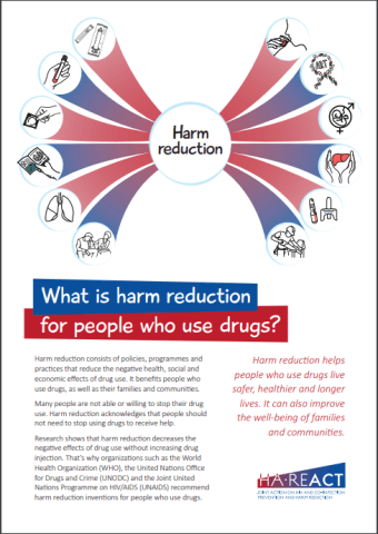 This brochure explains what harm reduction is consisting of and how it benefits to people who use drugs, as well as their families and communities.